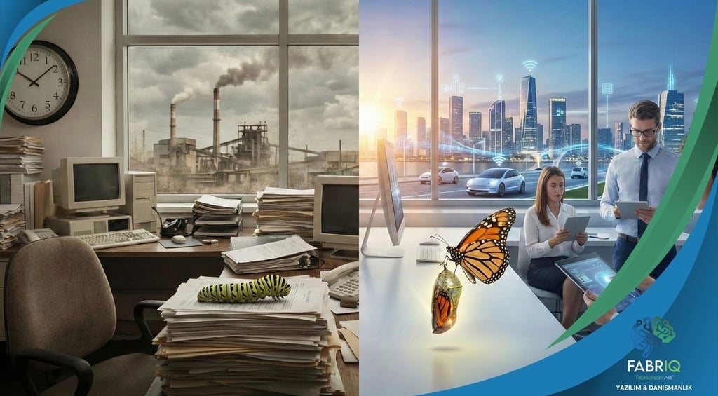 Eski Yol: Manuel stok takibi, kağıt üzerinde onay süreçleri, birbirinden habersiz departmanlar.